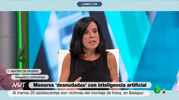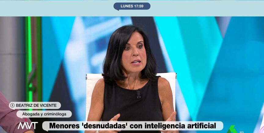 La abogada penalista y criminóloga, Beatriz de Vicente, ha explicado este lunes en Más Vale Tarde que la publicación y difusión de fotografías del falso desnudo de menores realizado con inteligencia artificial (IA) conlleva a "varios delitos".