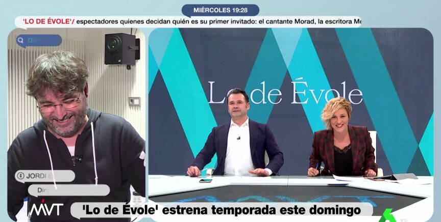 Jordi Évole conectó con 'Mas vale tarde' con motivo del estreno de la nueva temporada de 'Lo de Évole', que tendrá lugar este domingo. El periodista conversó con Iñaki López y Cristina Pardo sobre diversos temas y también vivió un cómico momento durante su aparición en el programa.