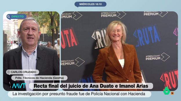 Llega la recta final del juicio de Ana Duato. La actriz ha sido acusada por el fiscal de "ocultar sus rentas" a Hacienda y pide para ella 16 años de cárcel. Carlos Cruzado, presidente del Sindicato de Técnicos del Ministerio de Hacienda, aclara que, en el caso de la actriz, "no estamos ante una defraudación, que consiste en trasladar a una sociedad o cobrar a través de una sociedad, lo que tendría que haber cobrado personalmente y declarar en renta, sino que es algo más fuerte".