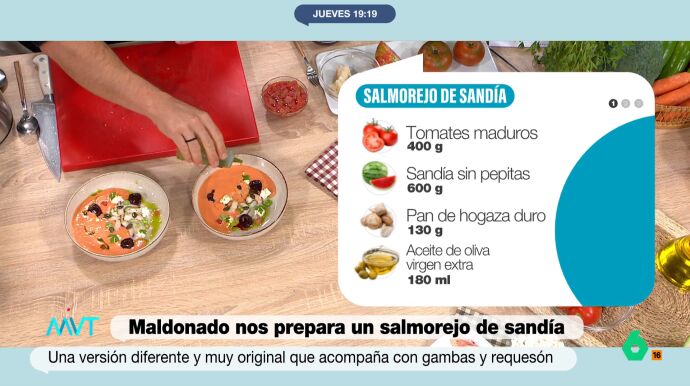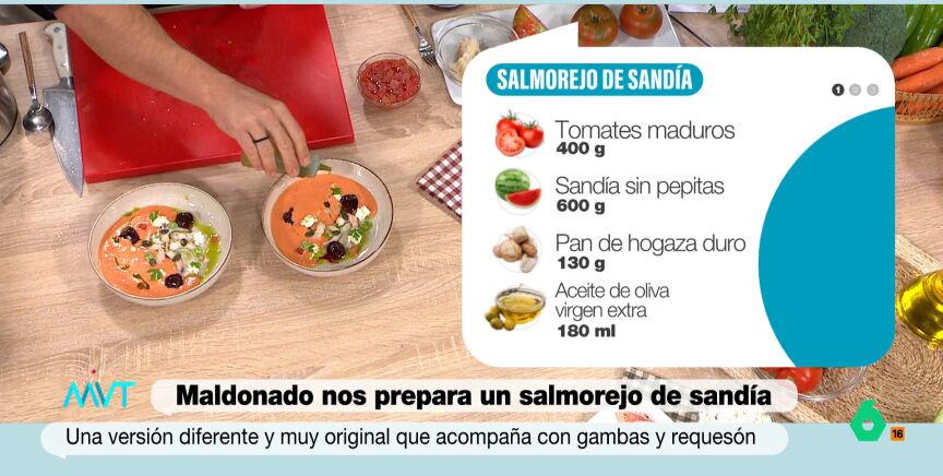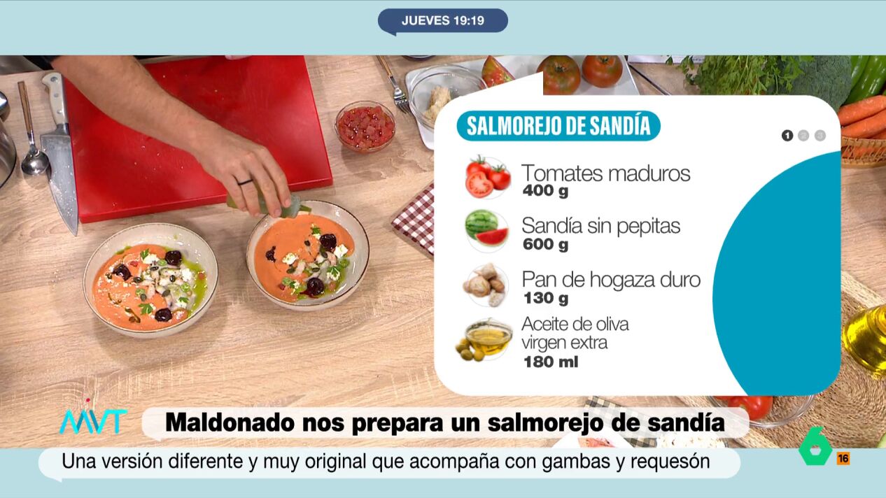 Carlos Maldonado trae a Más Vale Tarde una original receta que permite dar un nuevo aire al clásico salmorejo, uno de los platos más recurridos ahora que el verano está a la vuelta de la esquina. La receta paso a paso, en este vídeo.