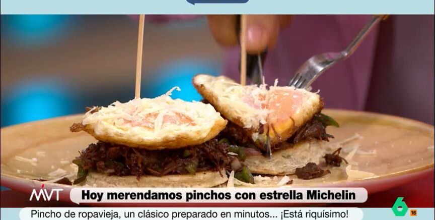 El cocinero ha elaborado en Más Vale Tarde un ropavieja pero en tapa. Para su preparación, ha necesitado ingredientes como pan rústico, huevos, carne guisada y desmigada, vino de oporto, entre otros.