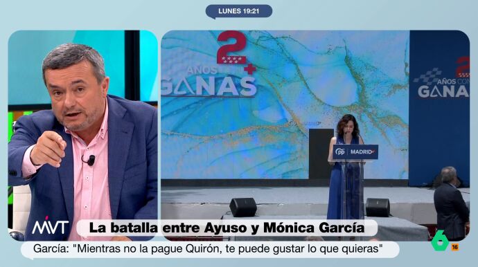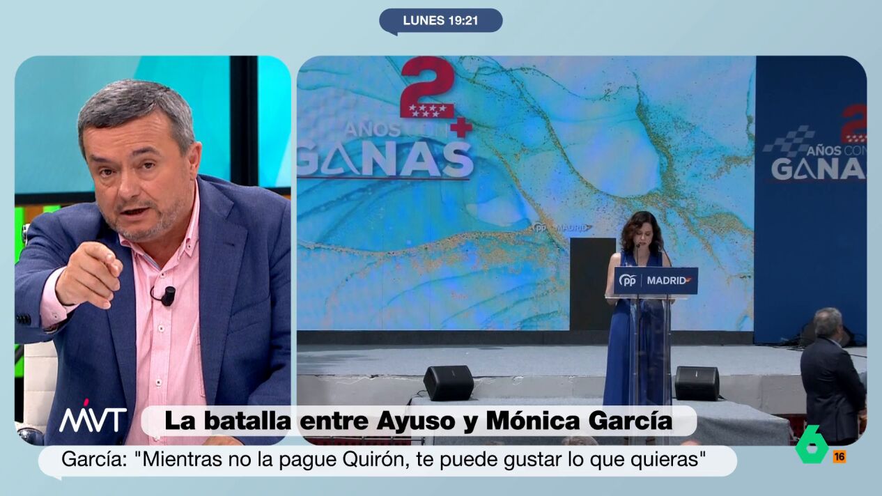 "La señora Díaz Ayuso es una mujer nacida para crispar, para polarizar y para tensionar", afirmó el periodista, quien añadió que esa forma de hacer política "le ha ido muy bien electoralmente". Sin embargo, advirtió que, tras dos años de legislatura, "no se conoce nada de su gestión".