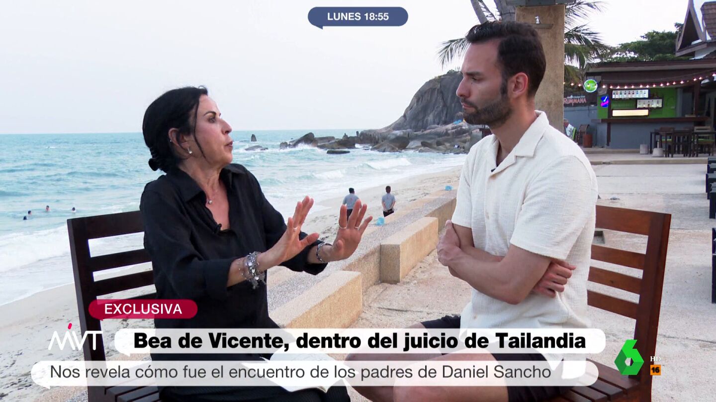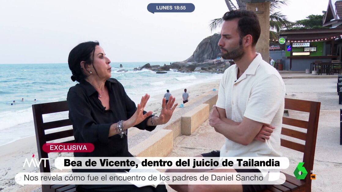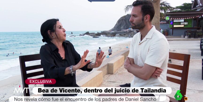 Beatriz de Vicente habla sobre el trato que Daniel Sancho mantiene con sus padres durante el juicio, en el que ella ha estado presente durante sus primeras jornadas. La abogada destaca el papel importante que está teniendo Rodolfo Sancho en la defensa de su hijo.