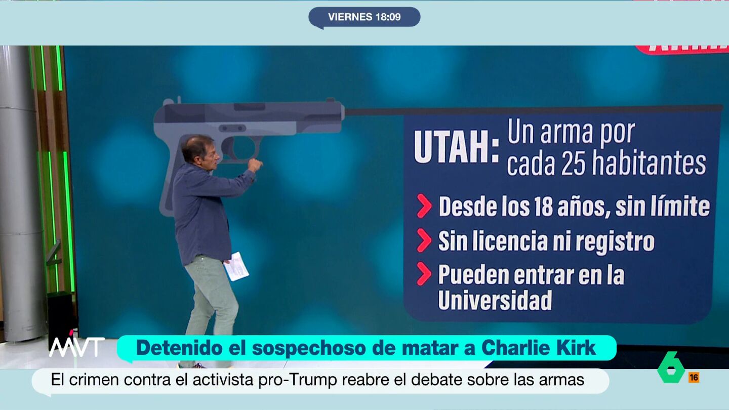 El crimen contra Charlie Kirk, el activista 'trumpista' que este miércoles fue asesinado tras ser disparado en el cuello en un campus universitario de Utah, ha reabierto el debate sobre las armas en Estados Unidos.