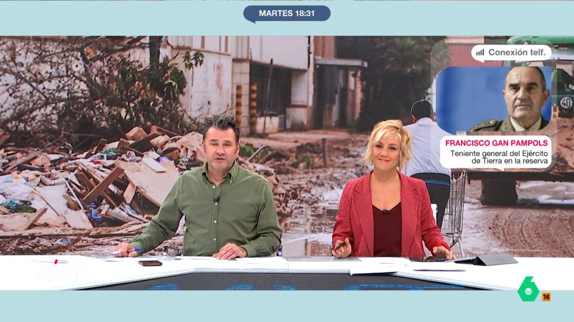 Iñaki López y Cristina Pardo arrancan la entrevista con el teniente general Francisco José Gan Pampols, recién nombrado vicepresidente de la Generalitat Valenciana para la reconstrucción tras la DANA del 29 de octubre recordando su etapa de analista del programa para la guerra en Ucrania.