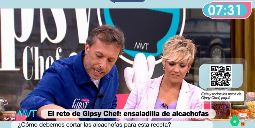 Pablo Albuerne, es decir, Gipsy Chef vuelve a Más Vale Tarde con uno de sus retos culinarios. En esta ocasión, tiene nueve minutos para preparar ensaladilla de alcachofas con huevo sobre ensaimada. Gipsy Chef afirma que es posible que a la gente le parezca extraño hacer la ensaladilla con alcachofa pero, como adelanta, "está deliciosa".
