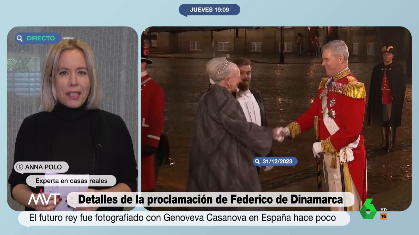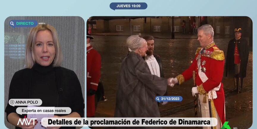 Más Vale Tarde conecta con Anna Polo, experta en casas reales, para analizar los detalles de la proclamación de Federico de Dinamarca como rey. Sobre la situación actual de la monarquía danesa, asegura que es "un culebrón" y explica que la ausencia de Marie Cavallier, mujer del hermano de Federico, se debe a que "las relaciones son malísimas, hasta el punto de que lo han reconocido públicamente".