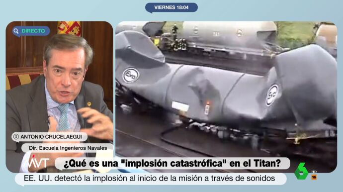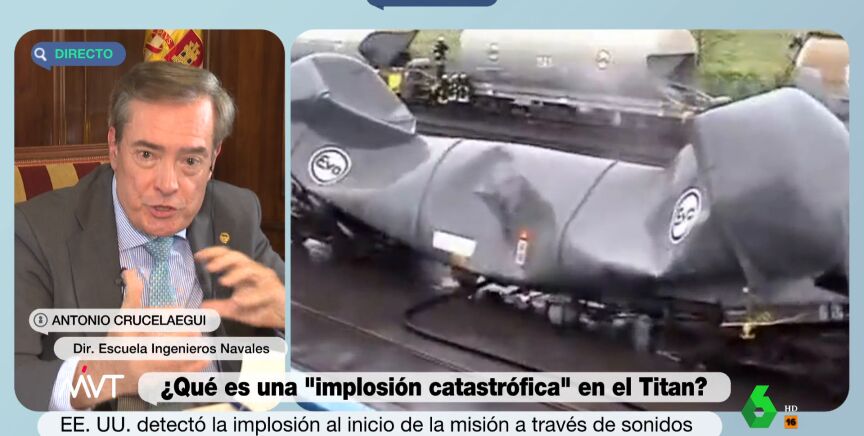 La "implosión catastrófica" que sufrió el submarino Titan y que acabó con la vida de las cinco personas que iban en su interior "no solo es un aplastamiento, es una desintegración". Así de claro ha sido Antonio Crucelaegui, director de la Escuela de Ingenieros Navales, que ha explicado en Más Vale Tarde lo que supone este fenómeno.