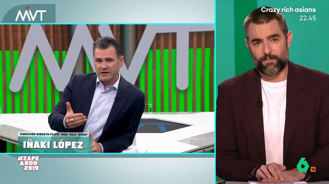 Dani Mateo conecta con Más Vale Tarde. En esta ocasión, recibe al presentador de Zapeando Iñaki López que hoy se encargara de conducir el programa en solitario. "Anda que te lo montas mal, canalla", le 'reprocha' debido a que se tomó varios días libres la semana pasada. "Si estoy haciendo el trabajo de dos personas y me pagan lo mismo", contesta López.