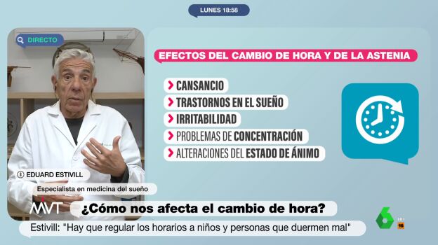 El cambio de hora puede provocar en nuestra vida fatiga, sueño, distracciones o incluso irritabilidad. Más Vale Tarde analiza esta cuestión con el doctor Eduard Estivill, especialista en medicina del sueño.