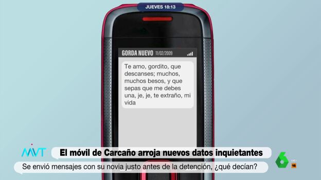 En un SMS del 10 de febrero de 2009, la novia le escribió que le "echaba muchísimo de menos": "Nunca me voy a arrepentir del día del Carrefour". "Cada día te amo más, gordo. Tus besos me dan fuerza y tus abrazos me hacen sentir que me amas. Te necesito", añadía en este mensaje.