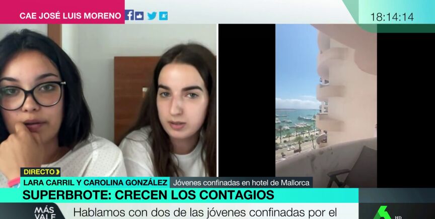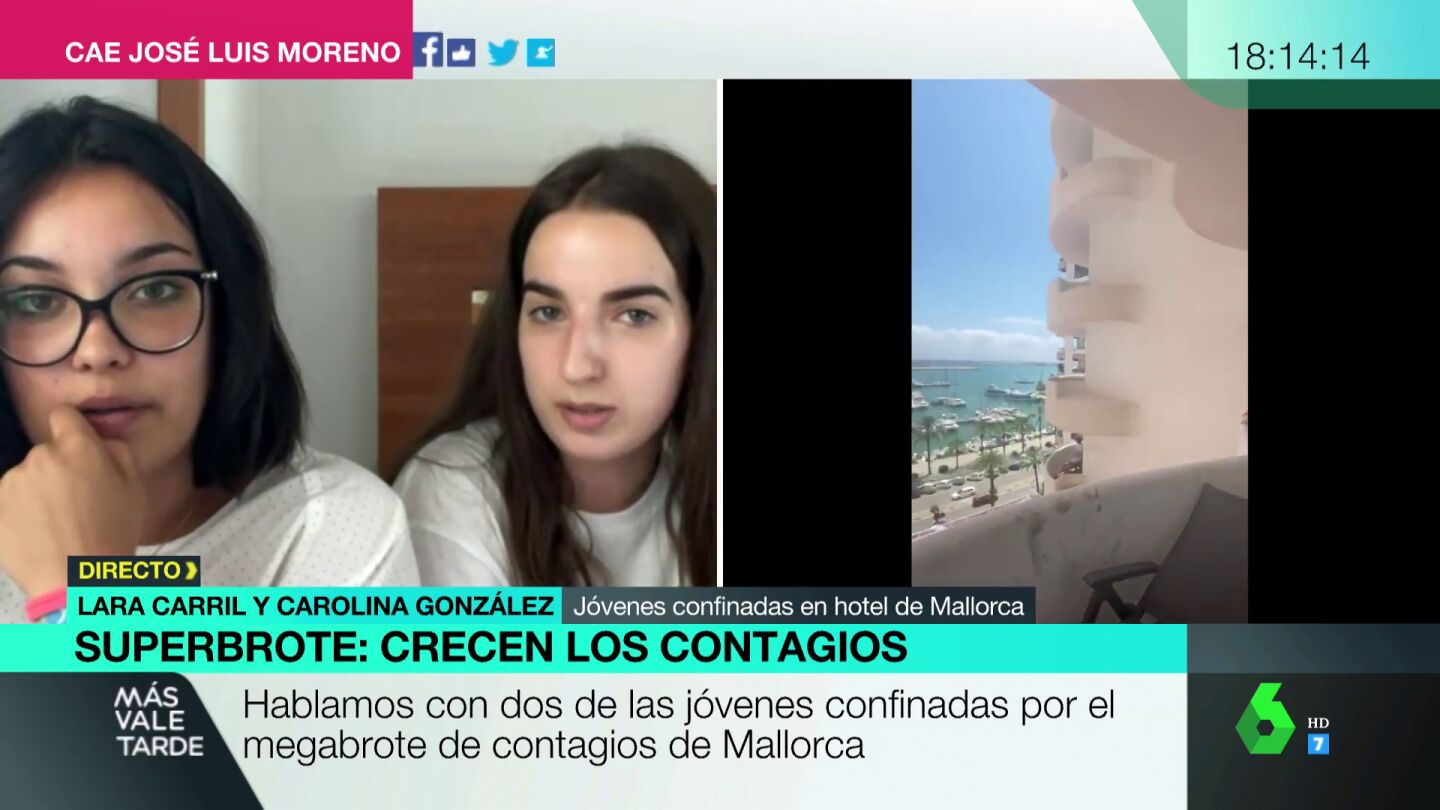 Dos jóvenes confinadas en el hotel de Mallorca aseguran sentirse "secuestradas" y explican por qué en esta entrevista con Mamen Mendizábal en Más Vale Tarde.