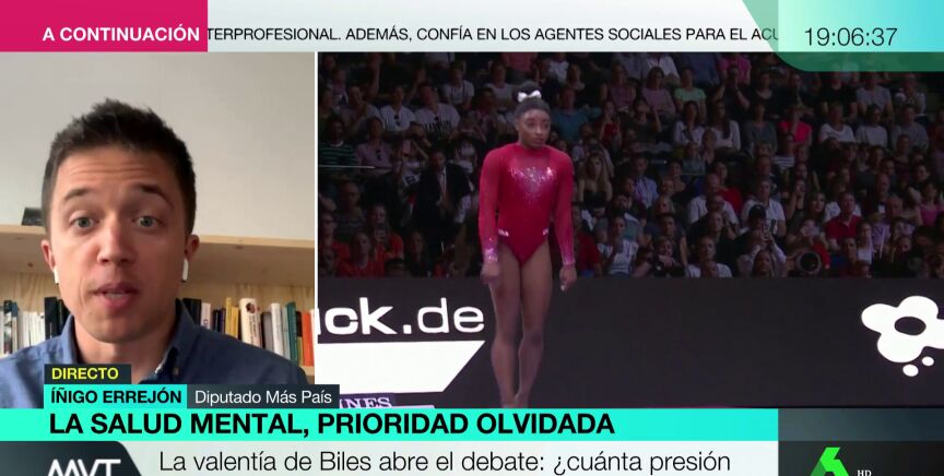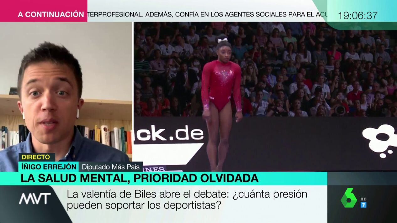 La salud mental ha vuelto a estar en boca de todos después de que la gimnasta Simone Bileshaya renunciado a competir en los Juegos Olímpicos para cuidarse. Sobre ello, Errejón considera que "ha tenido un gesto de enorme valentía que ayuda a mucha gente que esté pasando por lo mismo para decirles que no es que sean débiles ni es un problema que se deba de ocultar".