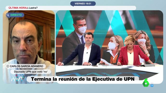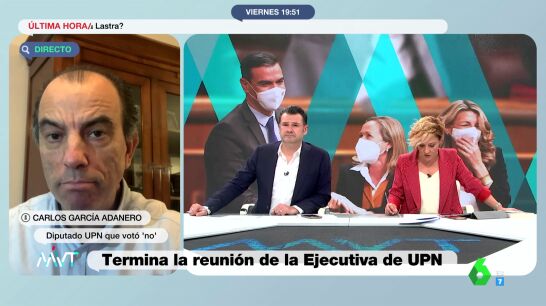 Ante esta situación, ¿cómo puede asegurar el diputado de UPN que representan la voluntad de los votantes del partido, tal y como ha afirmado recientemente? Ante la cuestión planteada por la periodista Cristina Pardo, García Adanero ha señalado que "le dan la razón" a sus votantes con este movimiento porque "votan en coherencia" con lo que vienen diciendo: "No se puede apuntalar al Gobierno de Sánchez salvo que sea porque renuncia a sus acuerdos con Bildu. Eso no se produce".
