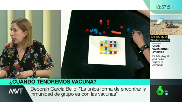 La única forma de encontrar la inmunidad de grupo se puede conseguir entoncescon las vacunas. La química y divulgadora científica Deborah García Bello ha explicado en Más Vale Tarde cómo funciona la inmunidad de rebaño a través de un juego con fichas Lego.