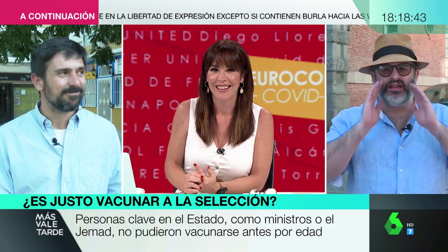 Así lo ha indicado al despedir a Ramón Espinar y Edu Galán -que han debatido sobre la vacunación de la selección española-, cuando este último le ha dicho: "Si te quedas, mejor".