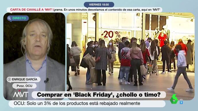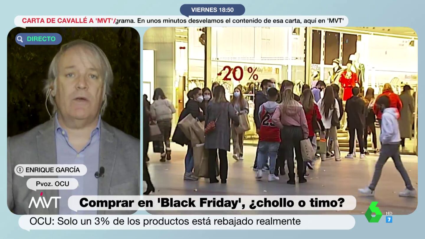 La OCU, a través de informes, ha advertido de que de los últimos seis años, en cuatro ha habido más subidas que bajadas de precios en el Black Friday. En concreto, en 2020, la media de los precios subieron hasta un 2,6%. "Nos venden como rebajas algo que no lo es", ha criticado Iñaki López en Más Vale Tarde.