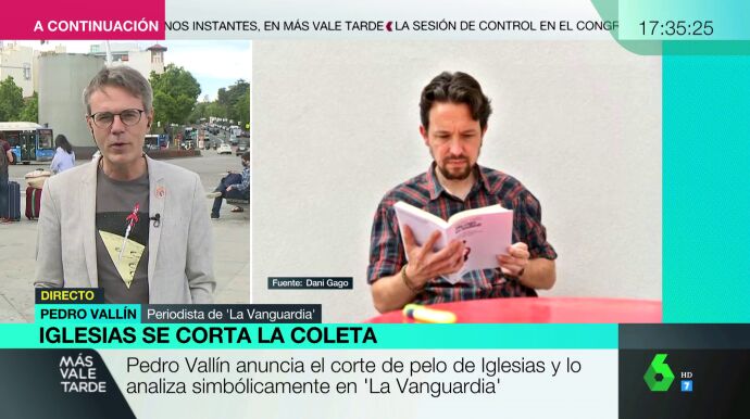 "En el verano del año pasado él comentó que estaba cansado de la coleta y que quería cortarse el pelo. Finalmente no lo hizo, y parece que el recogido fue una etapa intermedia antes de este corte de pelo", ha proseguido explicando Vallín, que ha relatado cómo accedió a esta foto del exdirigente de la formación morada. "Me mandó la foto para contarme que se estaba leyendo por fin el libro, y cuando la vi pensé que era muy impactante y simbólico".