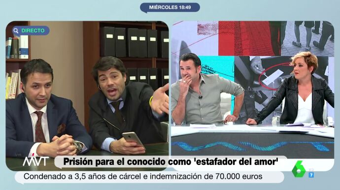 El conocido como 'estafador del amor', recientemente condenado a 3,5 años de cárcel, ha impedido en todo momento a Iñaki López y Cristina pardo llevar a cabo una entrevista sobre su sentencia, dedicándose a interrumpir, difamar y a realizar gestos obscenos.