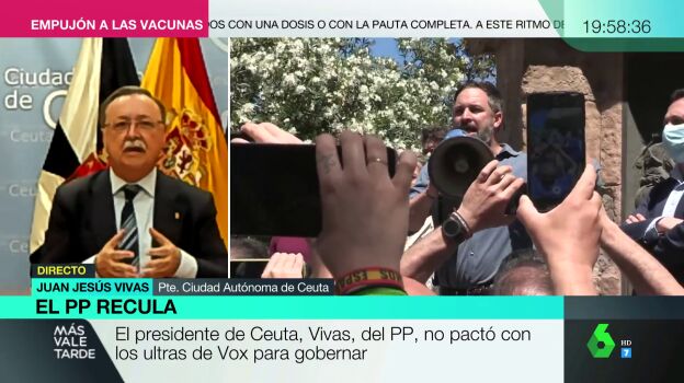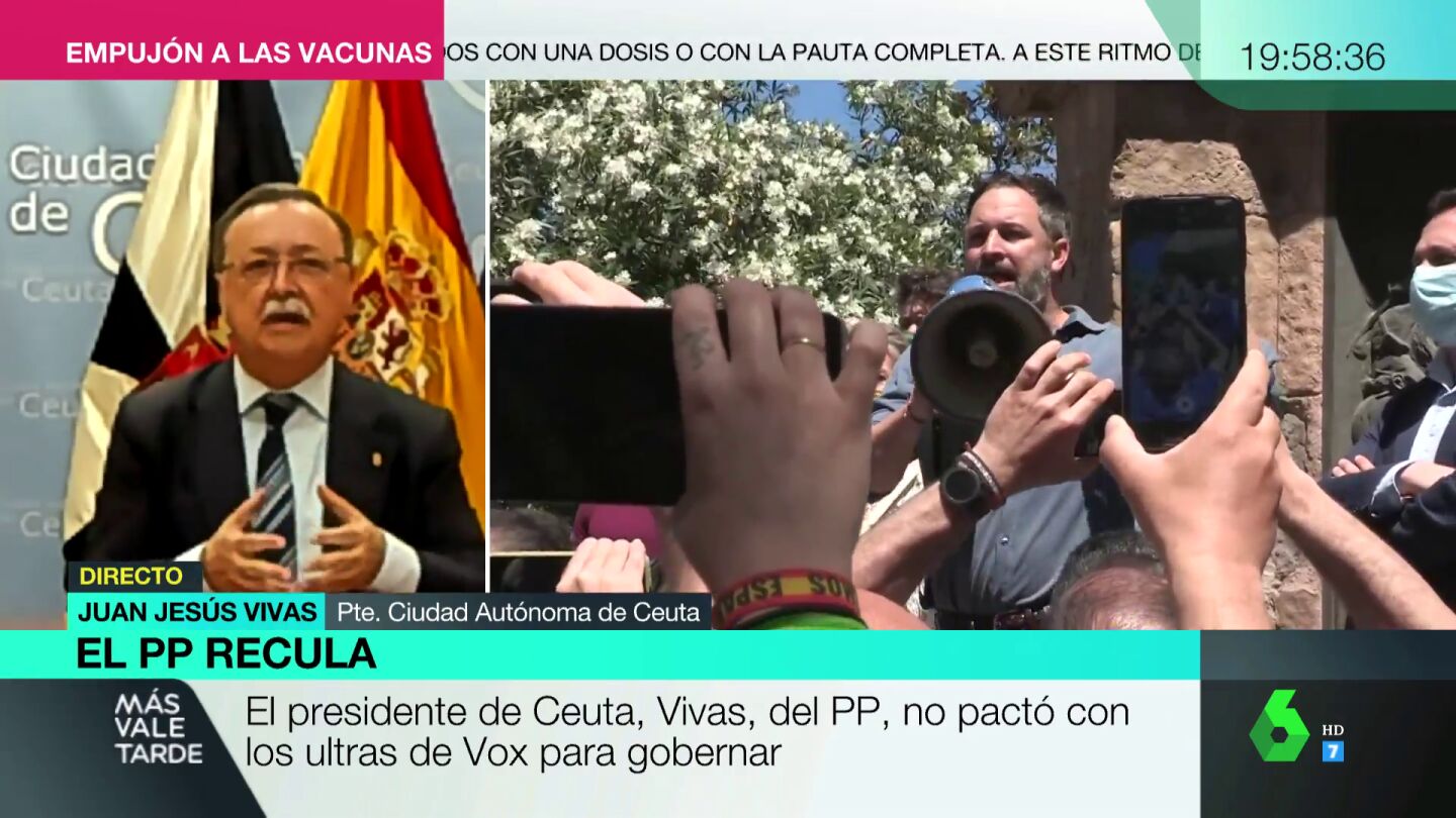 El presidente de Ceuta, el 'popular' Juan Jesús Vivas, ha confirmado en Más Vale Tarde que no consensuaron con la dirección nacional del PP su postura para que Santiago Abascal fuera declarado persona 'non grata', pero que hicieron lo correcto. Durante la votación, decidieron abstenerse porque creen que las manifestaciones del líder de Vox son "extraordinariamente graves".