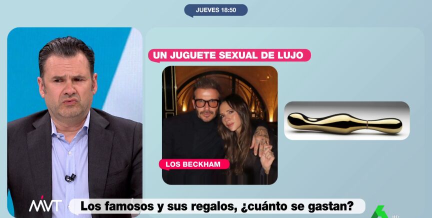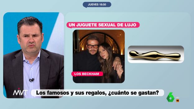 "¿Eso por dónde se agarra?", pregunta Iñaki López sobre el vibrador de casi dos millones de dólares que Beckham regaló a Victoria. "Iñaki ha vuelto al siglo XIX, cuando empiece la sección de nutrición vuelve al XXI", le responde Cristina Pardo.