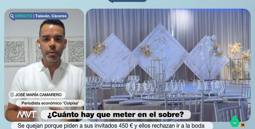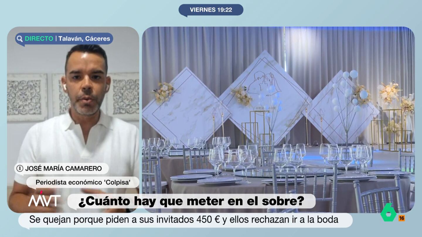 Ir de invitado a una boda también suele salir caro. Una de las normas no escritas cuando acudes a una celebración de esta índole es la de pagar una cifra significativa que cubra, por lo menos, lo cuesta el cubierto. Una polémica que Jose María Camarero, periodista económico 'Colpisa', ha querido zanjar exponiendo cuál es al cifra acorde que debemos meter en el sobre o marcar en la transferencia.