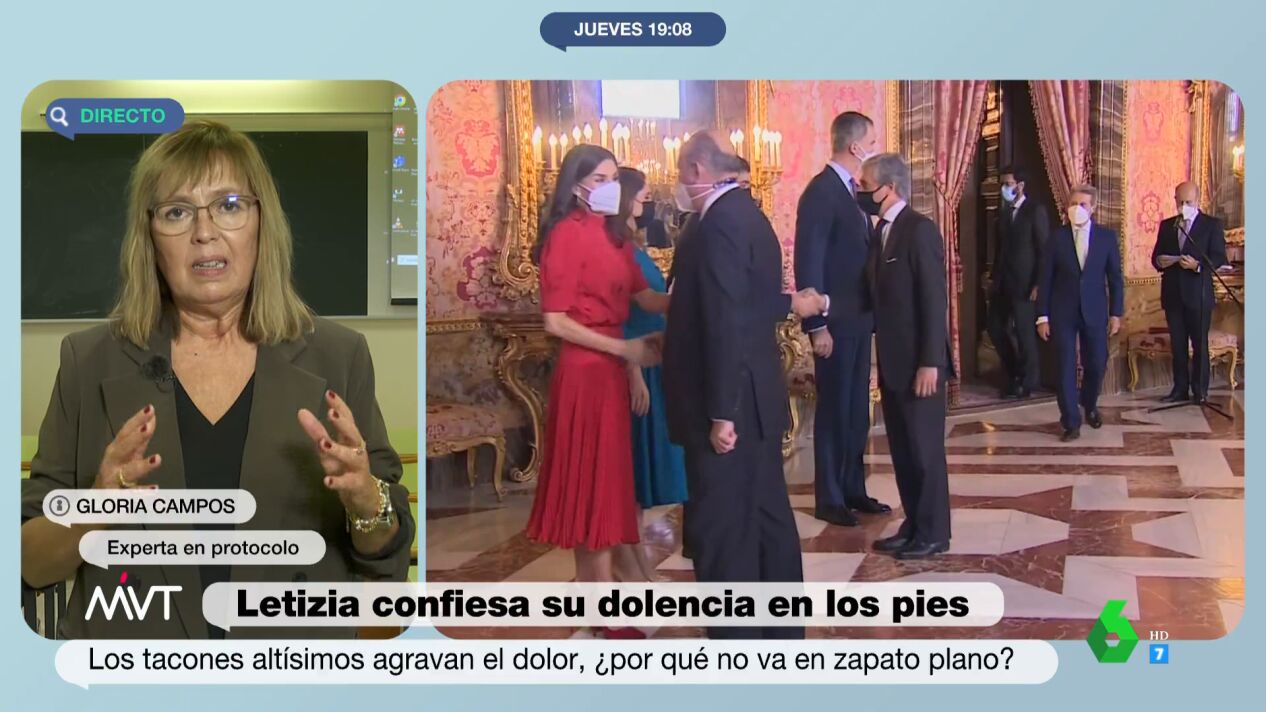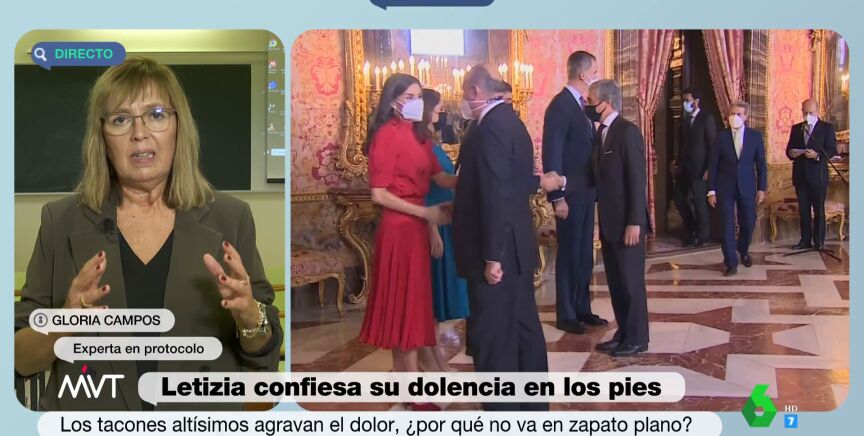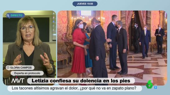 El protocolo ha sido la causa que se ha señalado a la hora de destacar el motivo por el que doña Letizia hace tanto uso de los tacones, algo que, según la experta en protocolo Gloria Campos, no es así. "Me he quedado atónita", llega a confesar a Iñaki López y Cristina Pardo.