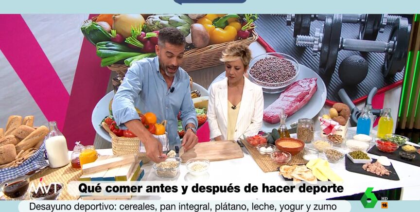 Es entonces cuando cuenta a Cristina Pardo cómo podemos hacer un desayuno de forma muy sencilla "en un minuto" para tener la energía necesaria. Los ingredientes son tres: yogur, avena y miel. "Esto me va a dar mucha saciedad, el pico de energía y la grasa saludable", comenta.
