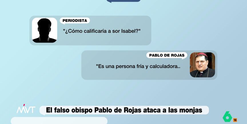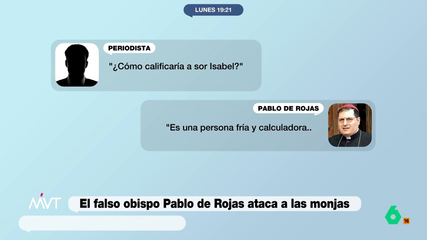 En una conversación con un periodista de Más Vale Tarde, el falso obispo Pablo de Rojas ha asegurado que la exabadesa de Belorado, sor Isabel, es "una persona fría, calculadora y con intereses".