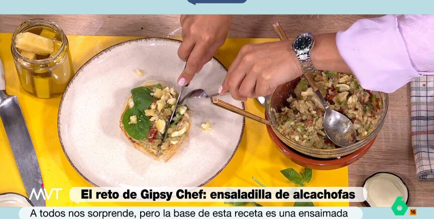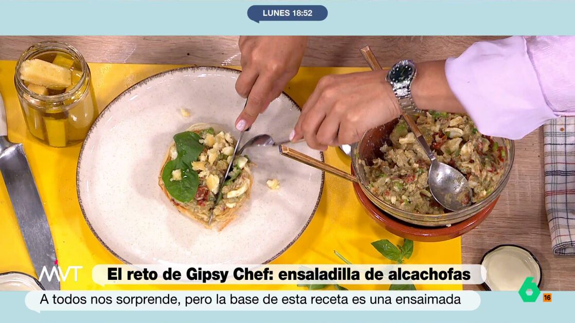 Supera el reto de Gipsy Chef con su receta de ensaladilla de alcachofas con huevo sobre ensaimada