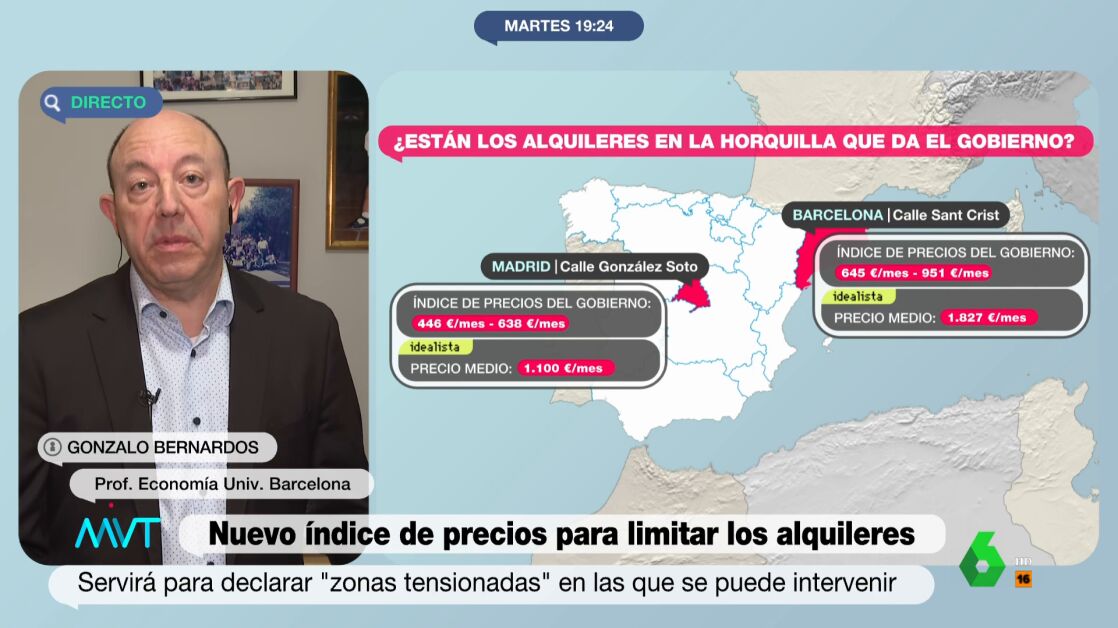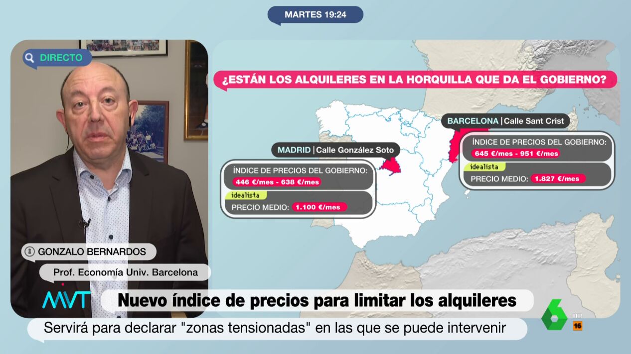 El profesor de Economía Gonzalo Bernardos ha valorado negativamente esta medida. Así, ha justificado que "en Barcelona, casi todo el mundo se está marchando al arrendamiento de temporada". Un tipo de arrendamiento que "dice que la clave es la temporalidad y esto incluye a estudiantes a desplazados": "Se pone en el barrio de Poble Sec por 700 euros de un grado de conservación regular y 948 personas han querido alquilarla entre un viernes y un lunes". En este sentido, asegura que "lo que van a hacer es restringir notoriamente la oferta, y cuando se restringe, el propietario elige al inquilino y lo que le pide al agente inmobiliario es que el inquilino no se declare vulnerable".