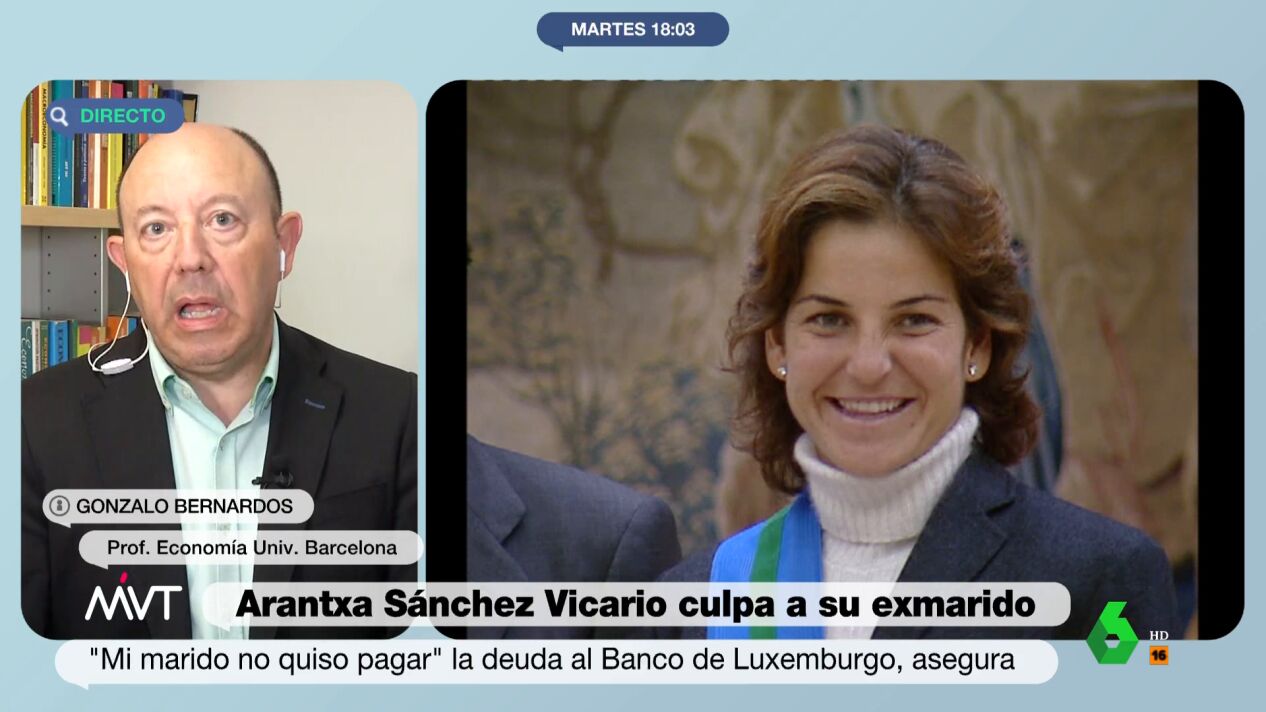 El economista y profesor de Economía en la Universidad de Barcelona, Gonzalo Bernardos, ha explicado este martes en Más Vale Tarde que Arantxa Sánchez Vicario "sabía perfectamente que se estaba vendiendo parte de sus propiedades". La extenista afronta una petición de cuatro años de prisión por ocultar su patrimonio para no pagar una deuda de 6,1 millones de euros al Banco de Luxemburgo.