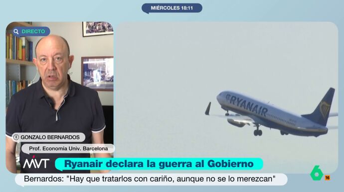 El economista apunta que quien pierde en este enfrentamiento es España, pues no ve tan sencillo que lleguen otras compañías para cubrir el vacío dejado por Ryanair: "Vemos un perjuicio para el turismo, el empleo y la propia instalación aeroportuaria", sentencia Bernardos, que asegura que en este caso "el Gobierno ha estado desacertado".