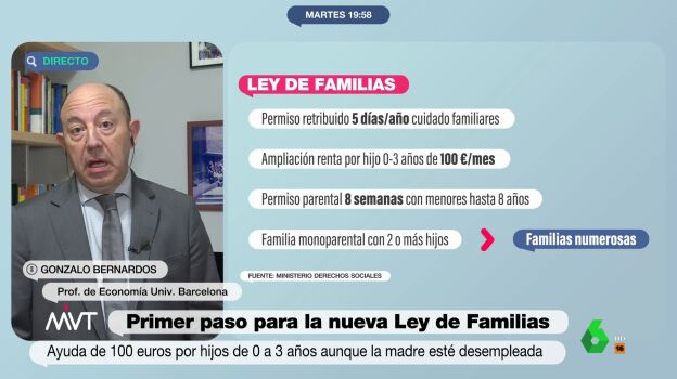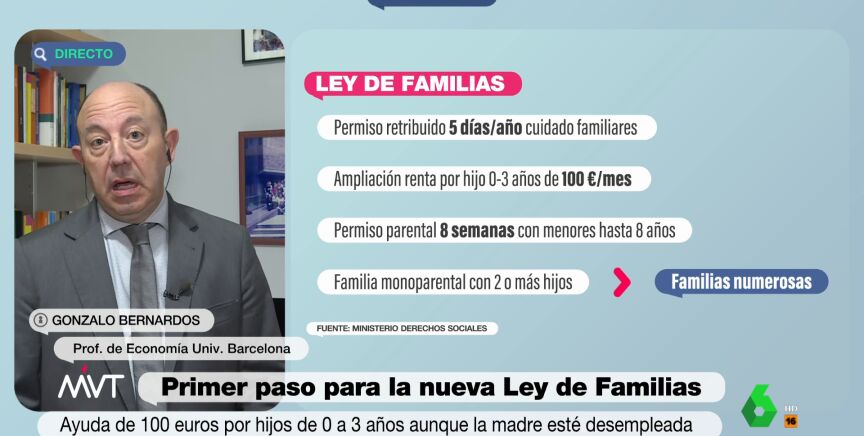 Gonzalo Bernardos ha denunciado en 'Más Vale Tarde' las "casi nulas" ayudas que reciben las familias, lo que convierte ser padre o madre en "una heroicidad en términos económicos". El profesor de Economía de la Universidad de Barcelona explica el "problema bestial" que tenemos en España de natalidad, el cual viene motivado, en parte, por los "escasos ingresos" de las familias.