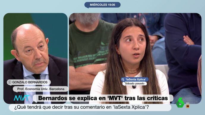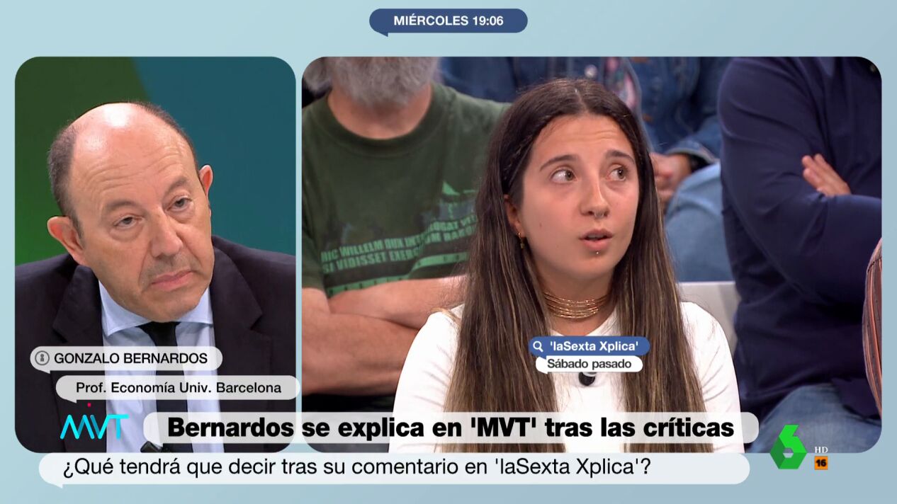 Tras debatir en laSexta Xplica con Sabela, que denunciaba los abusivos precios del alquiler en Madrid, Gonzalo Bernardos se reafirma en sus palabras en Más Vale Tarde, después de la controversia por sugerir a la joven la posibilidad de vivir "a 30 o 40 kilómetros" de la capital, argumentando que no se puede "aspirar a todo" y que "es una cuestión de oferta y demanda".