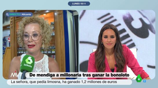 Su vida ha dado un cambio radical: de pedir para poder comer a ganar un premio de 1,2 millones de euros. Más Vale Tarde ha hablado con la lotera que vendió el cupón millonario, quien ha explicado que todos en el barrio están muy contentos porque sea ella quien haya ganado ese dinero: "Estamos sin palabras. Tenemos una satisfacción inmensa. Nos pusimos a llorar todos los que estábamos aquí", cuenta.