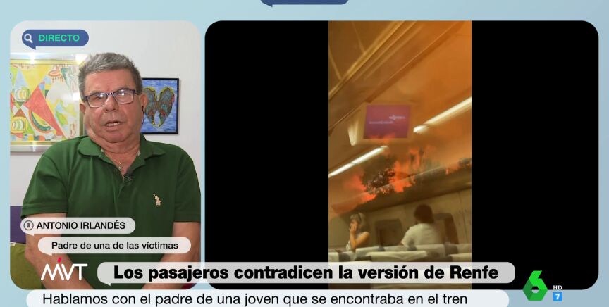 En las últimas horas estamos conociendo más testimonios de las personas que iban en ese tren que atravesó el incendio de Bejís. En Más Vale Tarde, hemos hablado con Antonio Irlandés, padre de una de las víctimas que se encuentra en estado "crítico", con sedantes "para que no le duelan las quemaduras" y añadiendo que está incluso "peor a nivel psicológico".