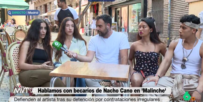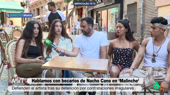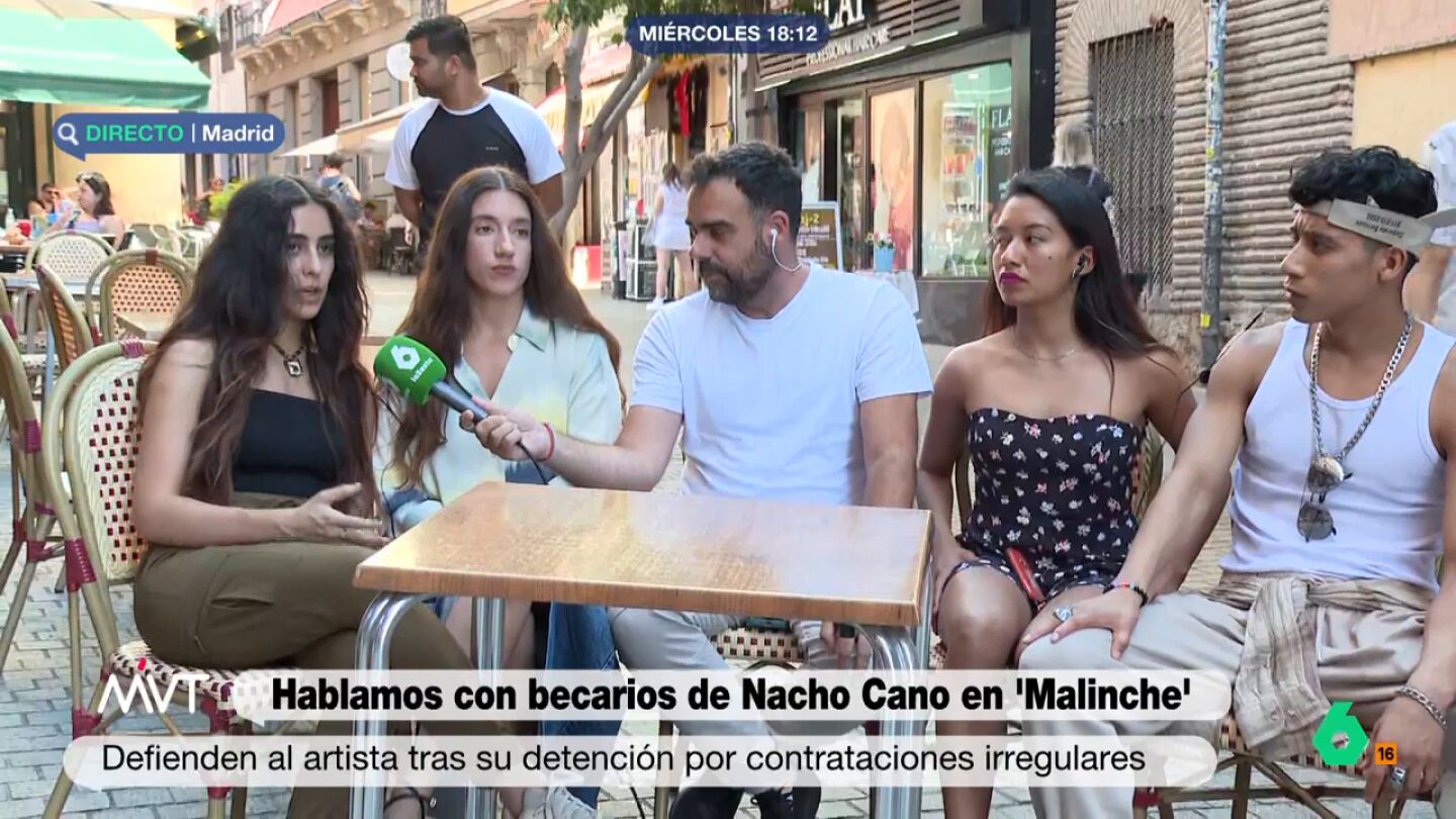 Cuatro de los 17 de becarios de México que forman parte de la obra de Cano, quien este martes quedó en libertad provisional después de declarar ante la Policía por la supuesta contratación ilegal de migrantes, han defendido en Más Vale Tarde al artista.