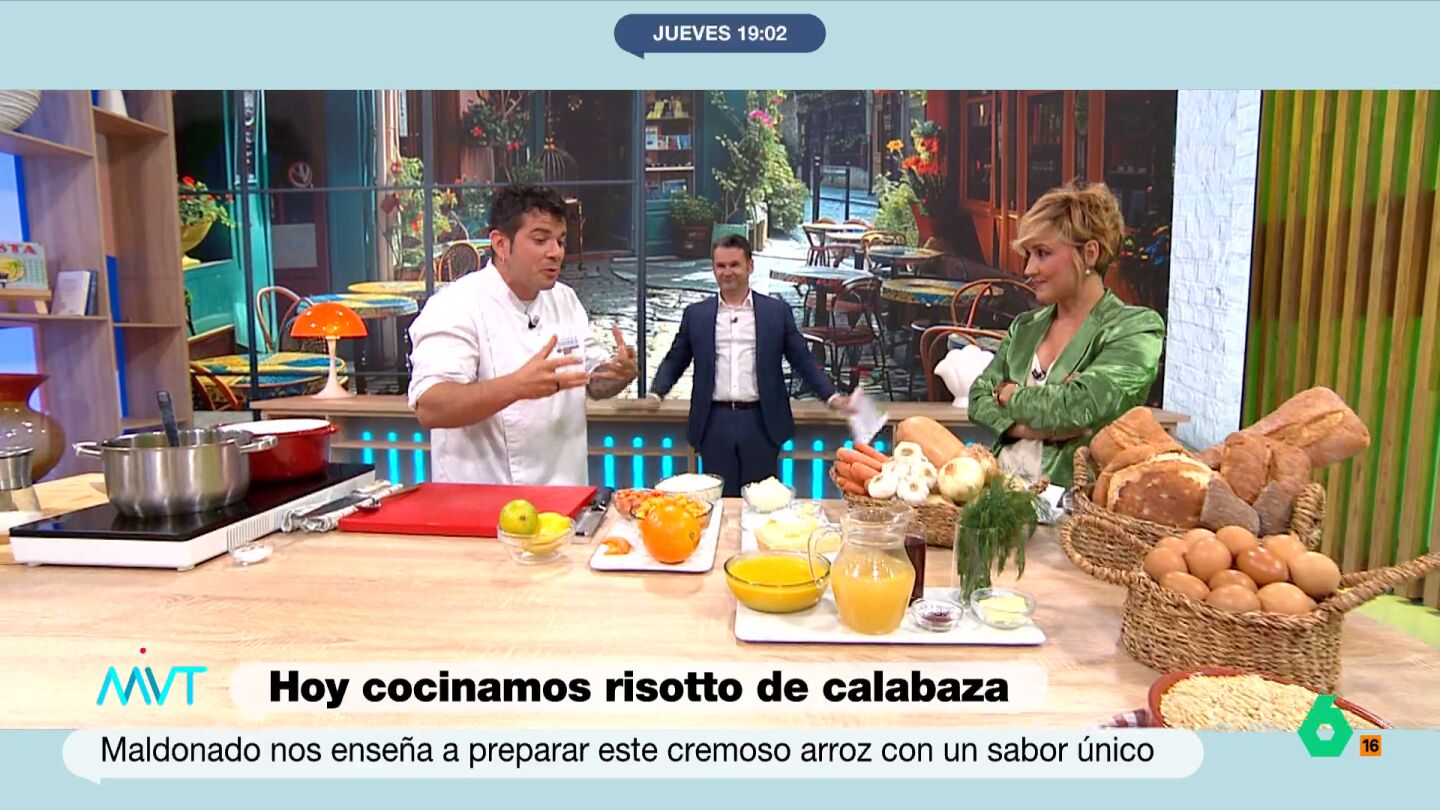 Como cada semana, el chef con estrella Michelin, Carlos Maldonado, cocina en el plató de Más Vale Tarde uno de sus deliciosos platos, en este caso un risotto de calabaza. Sin embargo, la sección tiene hoy una notable ausencia.