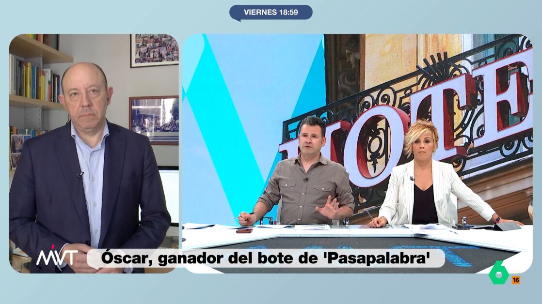 El presentador, tras escuchar a Óscar Díaz, ganador de Pasapalabra, defender los impuestos que tiene que pagar tras llevarse el bote, ha apoyado al concursante y ha tirado de ironía para recordar a los que presuntamente no lo hacen.