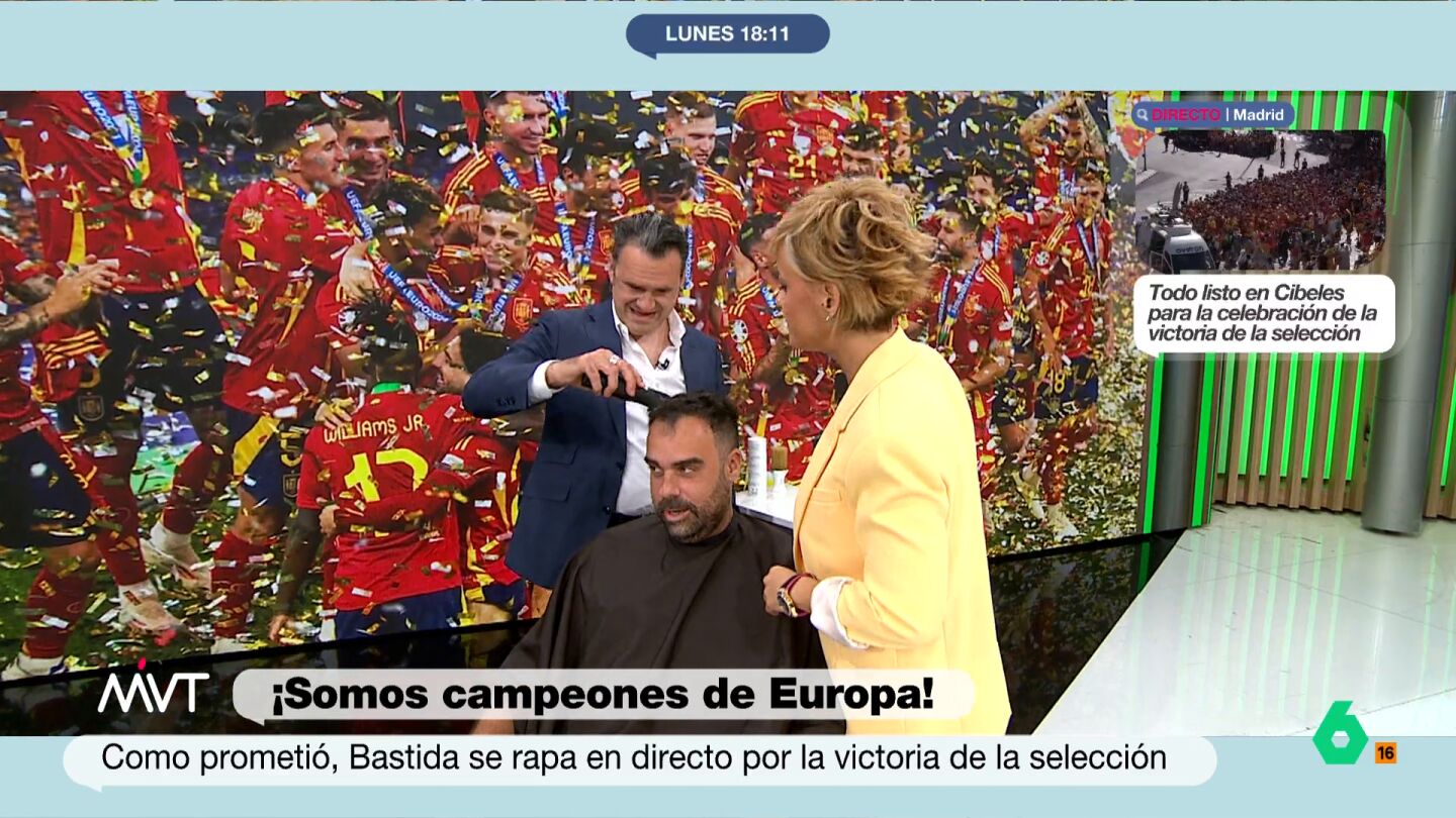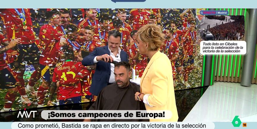 El pasado viernes durante el programa Bastida prometió en directo que, si España ganaba este domingo, se raparía la cabeza. Este lunes, tras la victoria de España, el periodista ha cumplido su promesa.