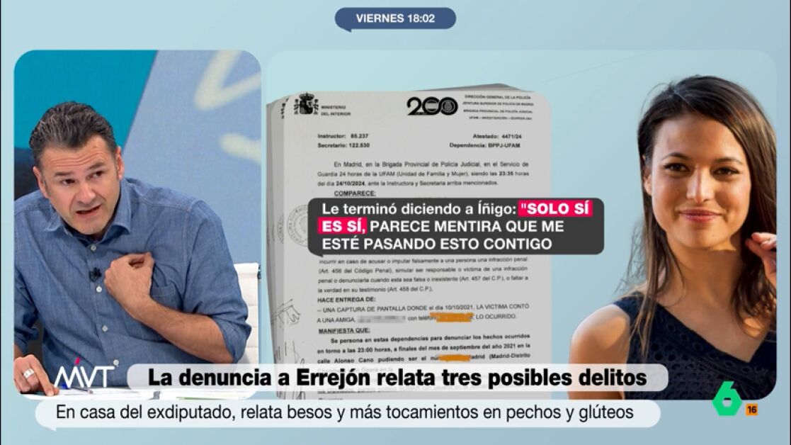 En las declaraciones de Mouliaá a la UFAM, ella relata todo lo ocurrido durante ese día en el que habría recibido esa presunta agresión sexual. En un momento, la actriz le dice a Errejón "solo sí es sí, parece mentira que me esté pasando esto contigo".