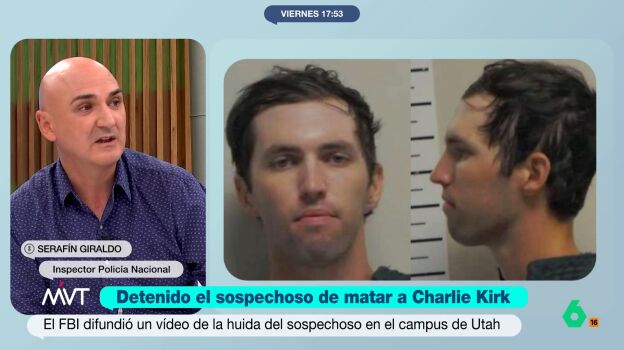 El inspector de la Policía Nacional, Serafín Giraldo, ha explicado en Más Vale Tarde que Tyler Robinson, el detenido por el asesinato de Charlie Kirk, "no es un profesional".