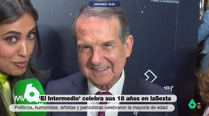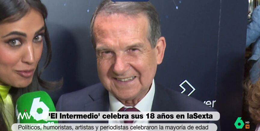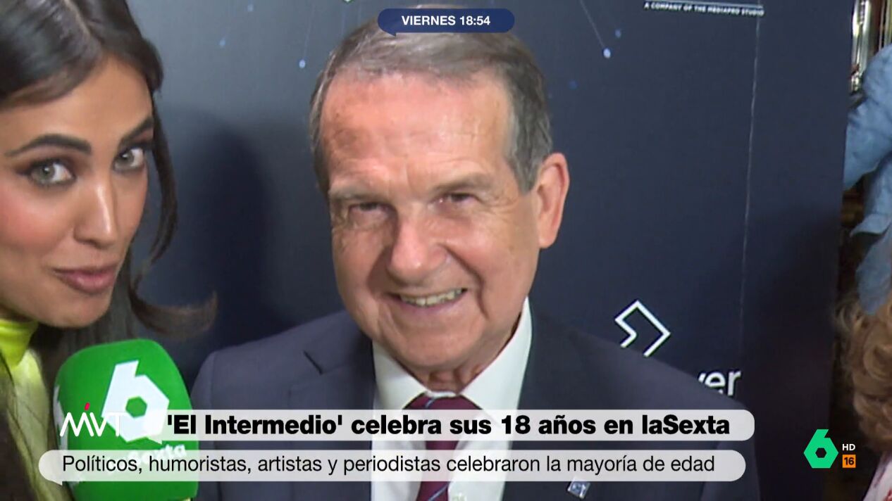 El Intermedio ha celebrado este jueves su 18 cumpleaños con un especial emitido desde el Florida Park de Madrid. Al evento acudieron numerosos rostros de la política, cultura, artistas y humoristas. Abel Caballero, alcalde de Vigo y "máxima autoridad mundial en organizar saraos", como destaca María Lamela; tampoco quiso perderse la fiesta por la mayoría de edad del programa más longevo de laSexta.