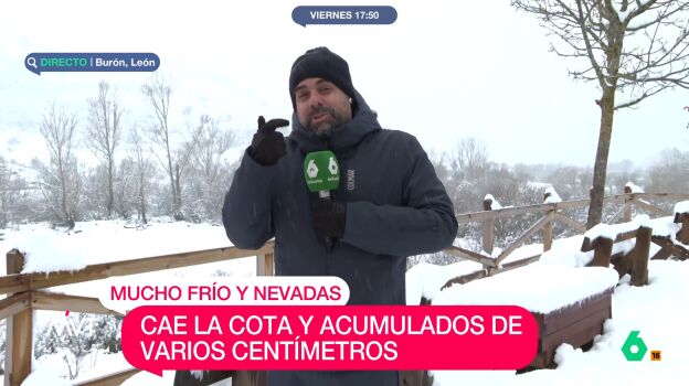 Para ver cómo ha nevado en la zona, desde el plató de Más Vale Tarde han conectado con el periodista Javier Bastida, quien se encontraba en Burón, León. Al darle paso, el presentador Iñaki López ha dicho entre risas: "Esta mañana nuestro compañero Bastida ha entrado en directo en Al Rojo Vivo para informarnos de la nevada en León desde el interior de un hotel".