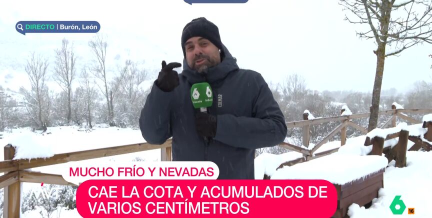 Al darle paso, el presentador Iñaki López ha dicho entre risas: "Esta mañana nuestro compañero Bastida ha entrado en directo en Al Rojo Vivo para informarnos de la nevada en León desde el interior de un hotel".