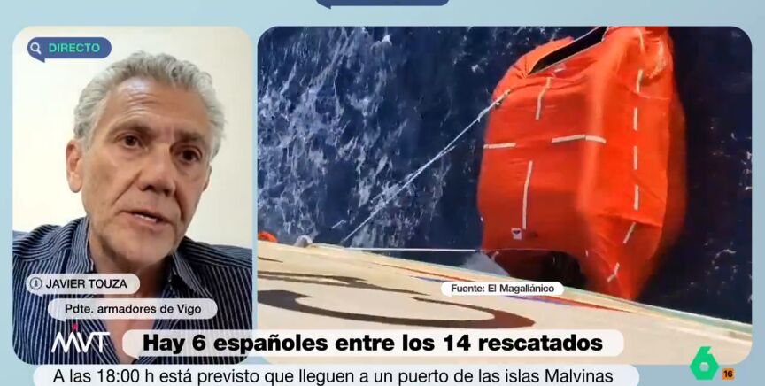 Javier Touza, presidente de los armadores de Vigo, ha explicado en Más Vale Tarde que "tanto por el agravamiento de las condiciones climatológicas como por la seguridad de los propios rescatadores" se ha decidido temporalmente suspender las labores de rescates de los desaparecidos.