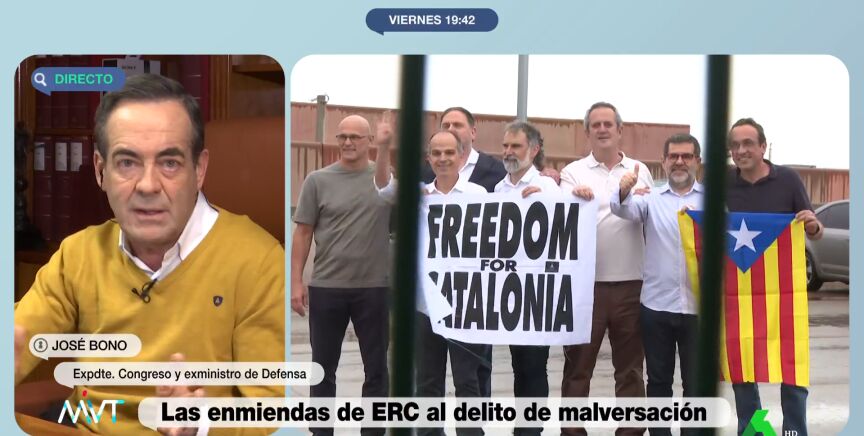José Bono, expresidente del Congreso y exministro de Defensa socialista, se ha pronunciado en Más Vale Tarde sobre reforma delito malversación que propone ERC y que el PSOE se abre a modificar. Su postura es contraria a la de su partido, el PSOE, y no la ha ocultado durante la entrevista: "Usar dinero público para cometer delitos no debe ser despenalizado", ha apuntado el expolítico.