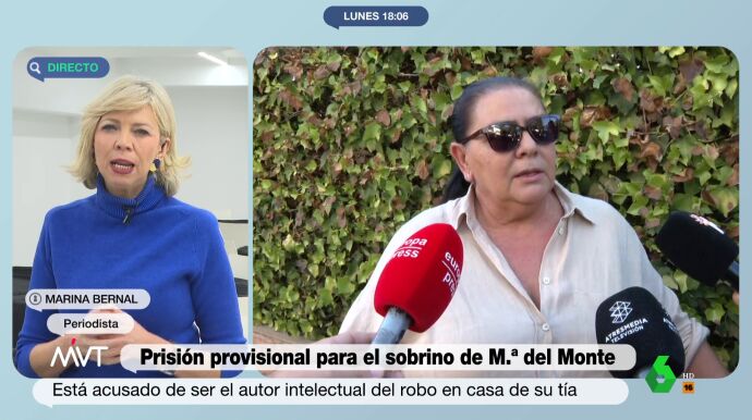 Antonio Tejado, sobrino de María del Monte, ha ingresado en prisión provisional sin fianza dentro de una operación de la Guardia Civil contra una organización dedicada a robar con violencia en viviendas de la zona del Aljarafe. En Más Vale Tarde hablamos con la periodista Marina Bernal, que conoce de cerca a Tejado y a María del Monte, para analizar las repercusiones que puede tener esta noticia.