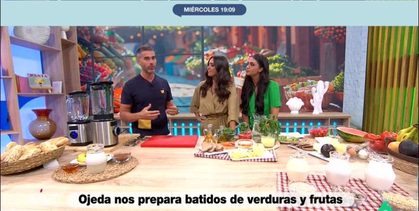 El nutricionista Pablo Ojeda ha preparado en Más Vale Tarde smoothies de frutas y verduras, aunque él prefiere llamarlos batidos "como toda la vida". Ojeda ha confesado que el mejor de todos es el gazpacho, destacando que, aunque los batidos modernos ofrecen muchas combinaciones saludables, el gazpacho, con su mezcla de tomates, pepinos, pimientos y cebolla, "aporta mucho a nuestra alimentación".
